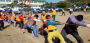 ‘영차, 영차!’ 만국기가 펄럭이는 푸른 하늘 아래 청팀과 홍팀 남녀선수 50여명이 학창시절로 돌아가 한목소리로 줄을 당기며 외친다. [